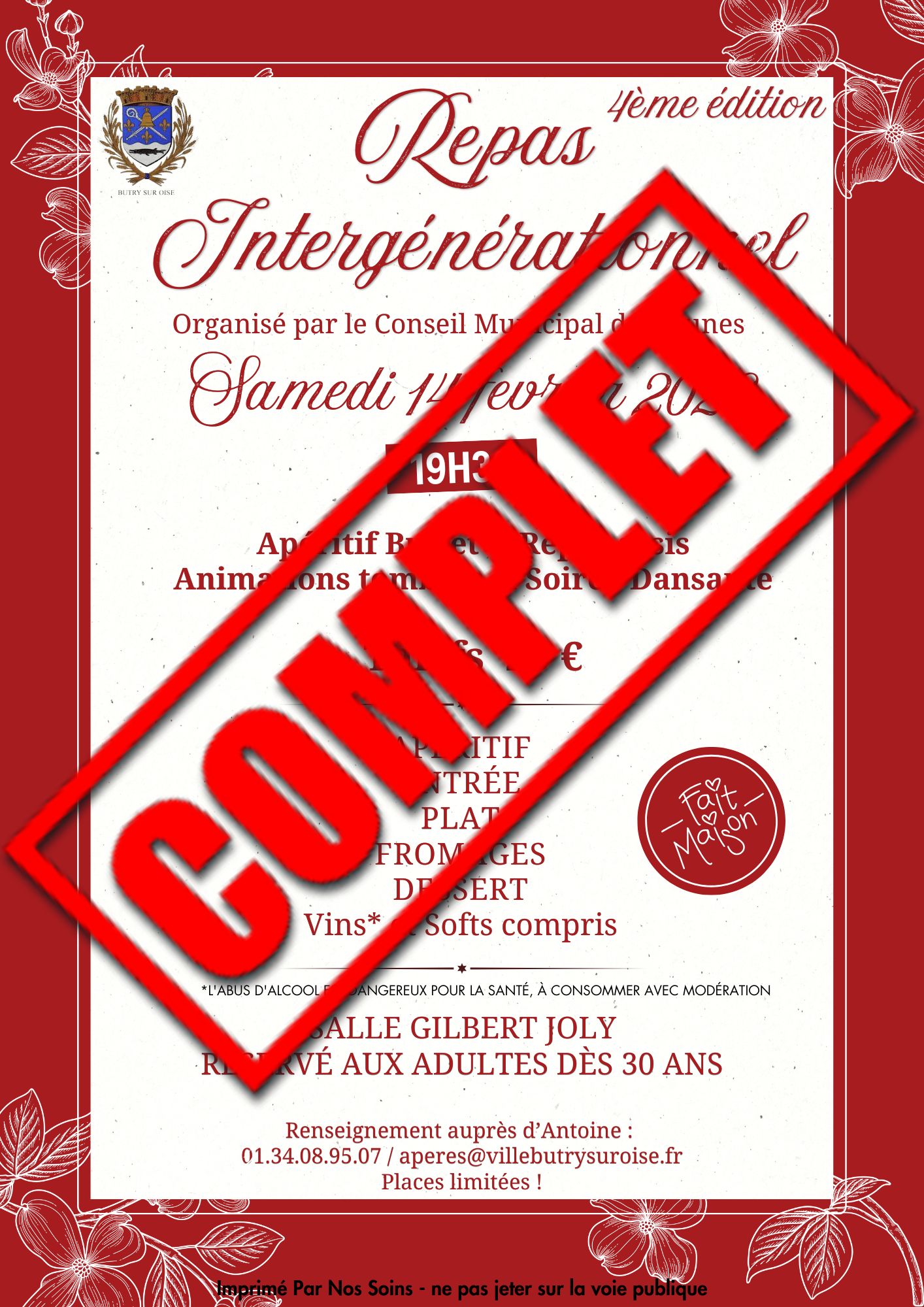 Nous vous informons que la 4ème édition du repas intergénérationnel est désormais complète. Nous ne pourrons malheureusement plus accepter d'inscriptions.
