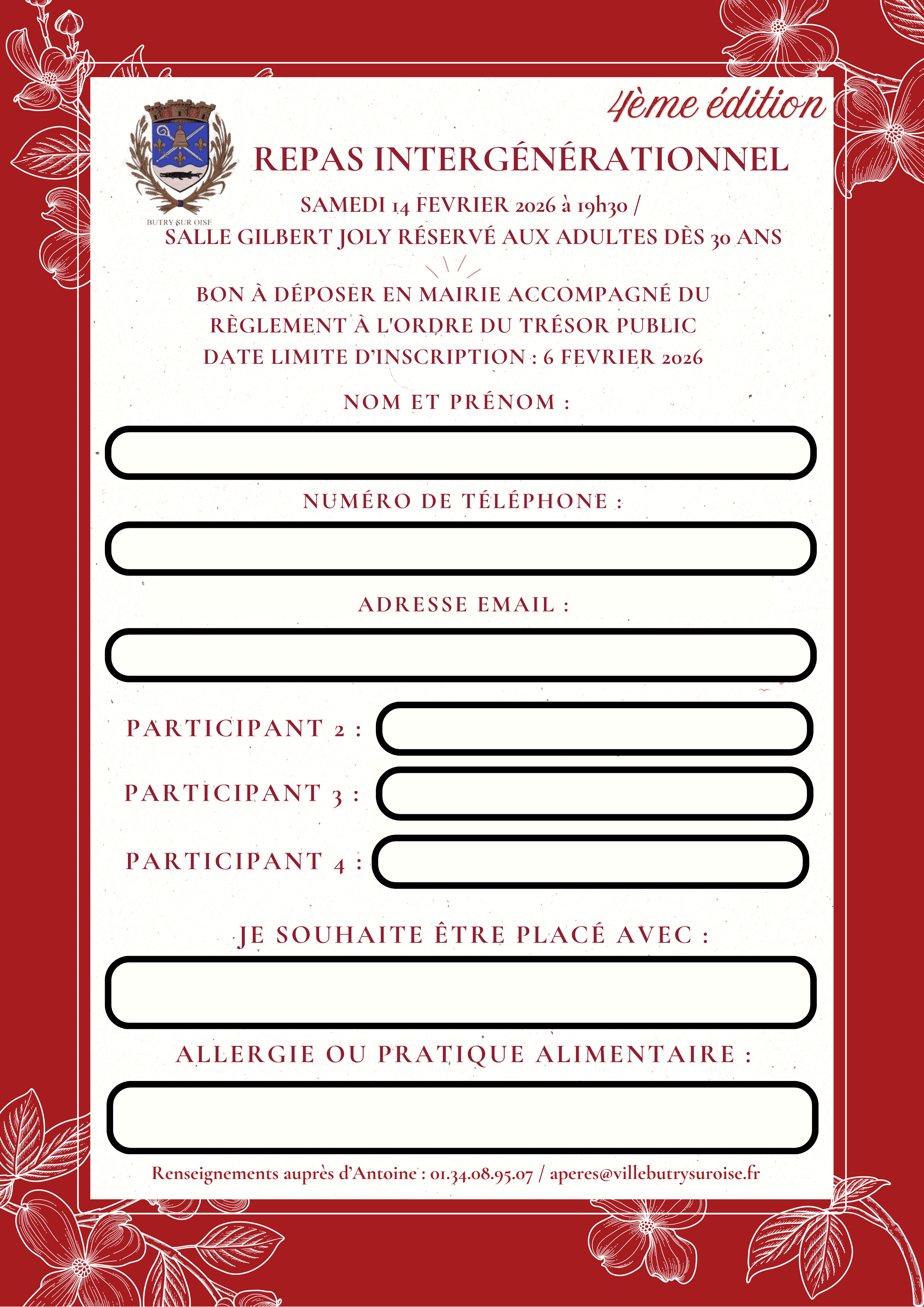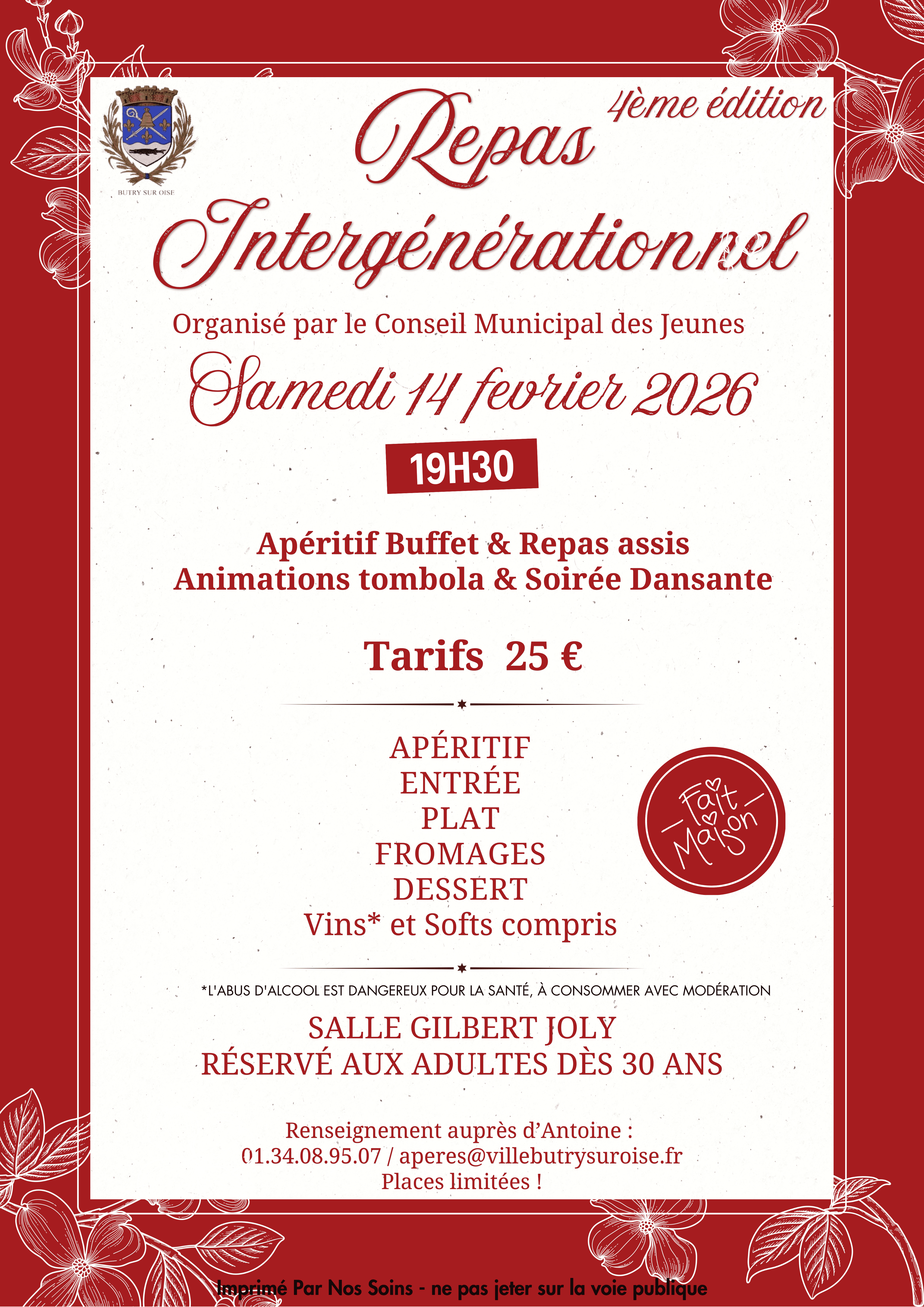 La 4ème édition du repas intergénérationnel aura lieu le 14 février à 19h30 dans la salle Gilbert Joly.