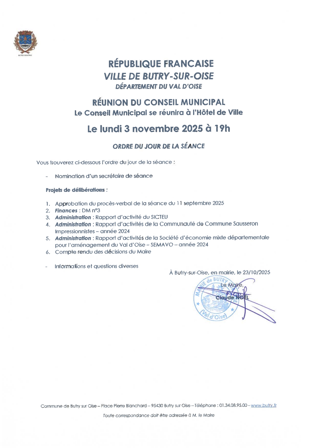 Accueil > Evènements > CONSEIL MUNICIPAL DU 03 NOVEMBRE 2025